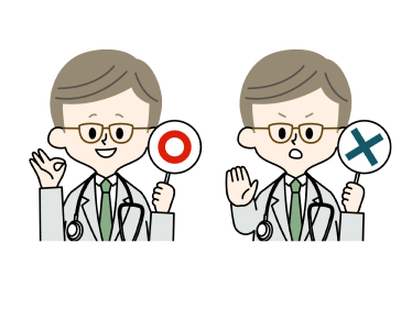 マルとバツの札を持っている男性医師