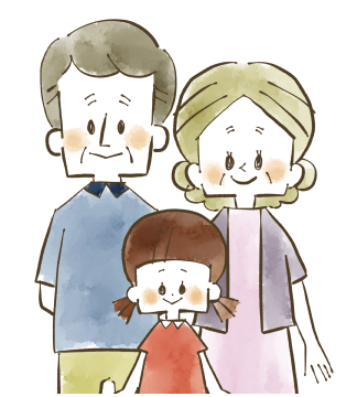 笑顔の祖父母と孫-水彩
