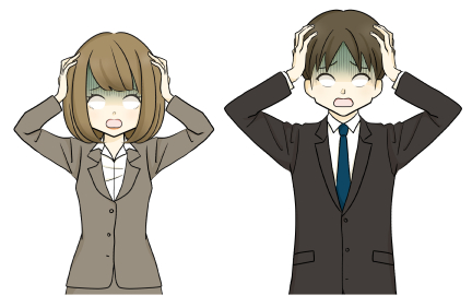 ショックを受けているスーツ姿の男女