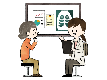 医師の診察を受けているシニア女性-水彩