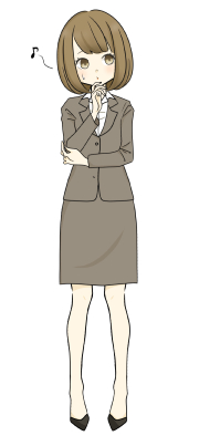 口笛を吹くスーツ姿の女性