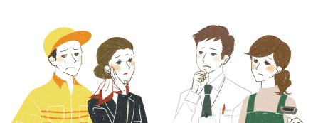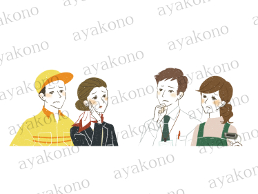 困った表情の働く人々