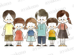 水彩 困っている三世代家族セット-水彩