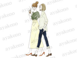 主線あり 頬を赤めにやけるスーツ姿の男女