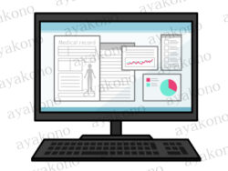 水彩-主線あり ノートパソコンの電子カルテ-水彩