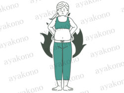 肥満女性の身体の代謝や燃焼のイメージ-2色